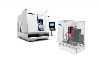 砂轮总是安装在主轴前端,通过金刚石滚轮在Z轴方向自动定位更换成型。宽敞的加工空间避免了砂轮法兰盘和工件之间的实际碰撞。在MFP 50中最大程度地利用了砂轮直径,明显地降低了生产成本。